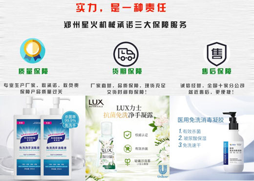 突如其來的新冠肺炎,讓大家的新年都過得無比揪心。接下來返城、返工,我們即將面對另一個考驗。疫情當前,預防工作一定是重中之重!不得不走出家門時,一定要:出門就戴口罩、進門就洗手!除了口罩,手部的防護也需要重視起來!給大家推薦一下--免洗手消毒凝膠。免洗手消毒凝膠可以比較全面的殺死手上的病菌,要比肥皂效果好多了,能殺死或抑制微生物生長繁殖,達到消毒滅菌的目的。同時,免洗手消毒凝膠的暢銷也促進了星火免洗手消毒凝膠灌裝機及免洗手消毒凝膠灌裝線的發展。