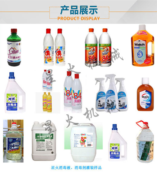 星火全自動84消毒液灌裝機及84消毒液灌裝生產線灌裝樣品實拍